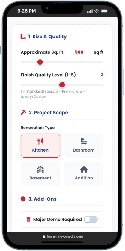 Clicks mean nothing if they don't convert. Our ads send traffic directly to a custom Rough Price Estimator. Leads must input their project specs and contact info to see a rough price range.