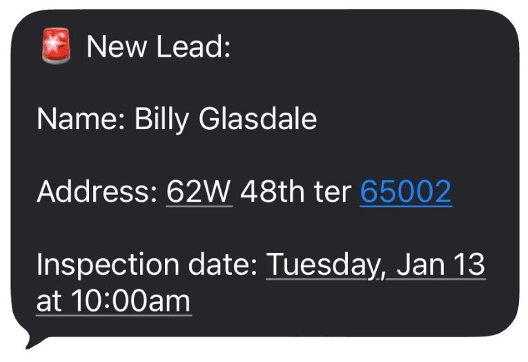 We send the project specs, address, and appt time directly to your crew for every lead.